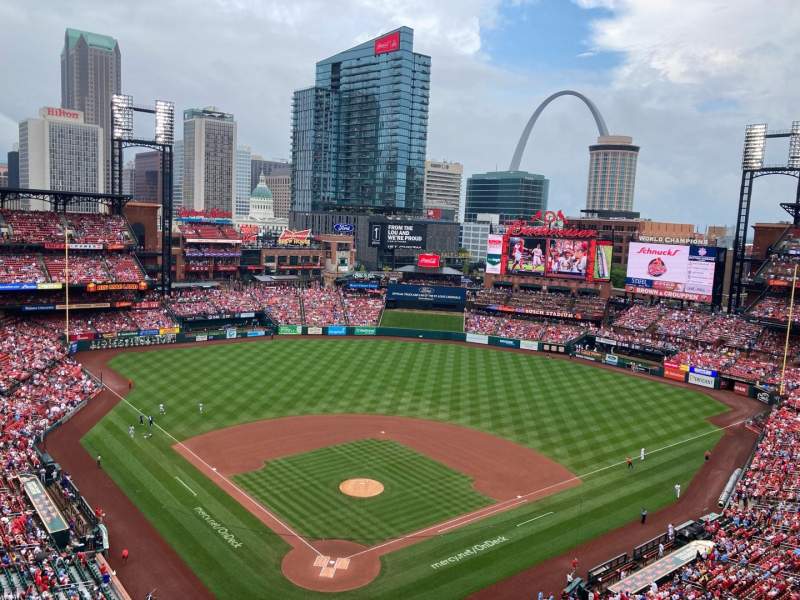 First time at Busch! Section 449 provides an outstanding view of the St. Louis arch. Seat is also under an awning. Beautiful view!